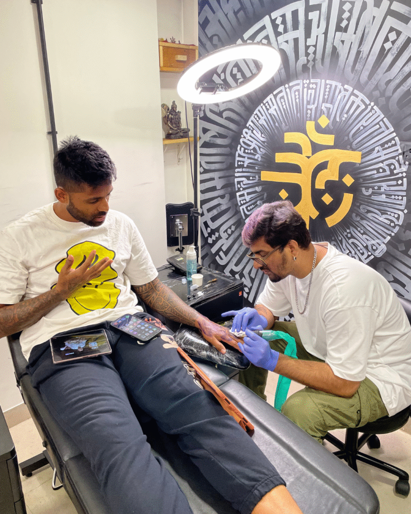Sanket tattooed Indian cricketer Surya Kumar Yadav, adding to a growing list of celebrity clients.
