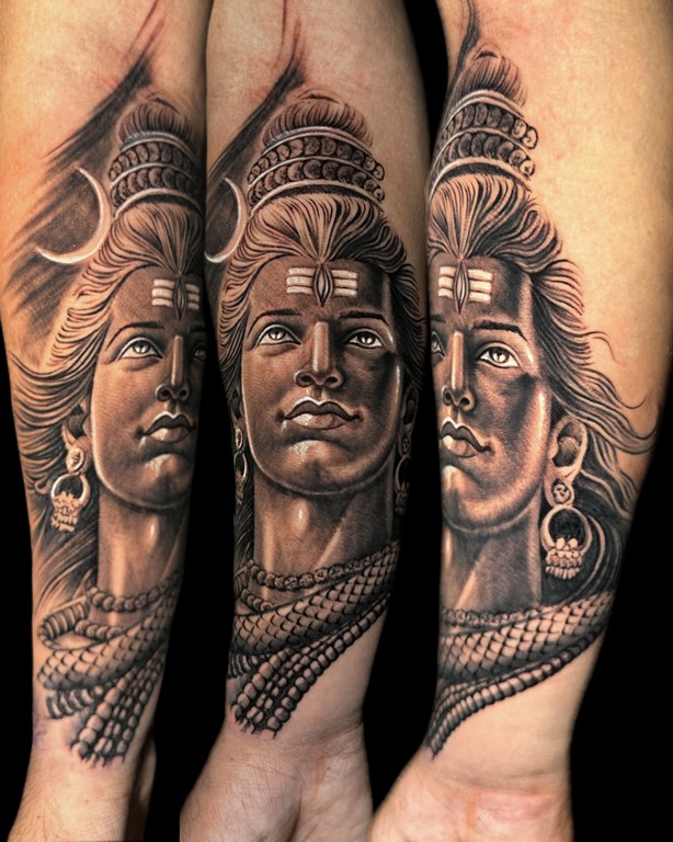 Shiva tattoos can be minimal, realistic, abstract, fine-line, black & grey, or colorful — making them suitable for everyone.